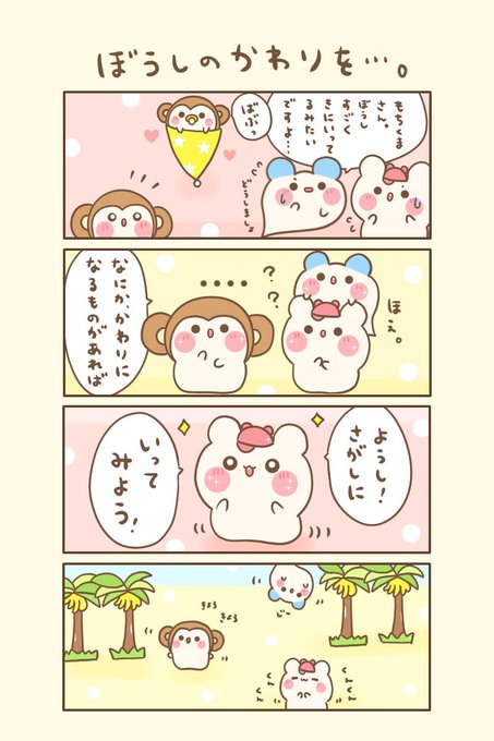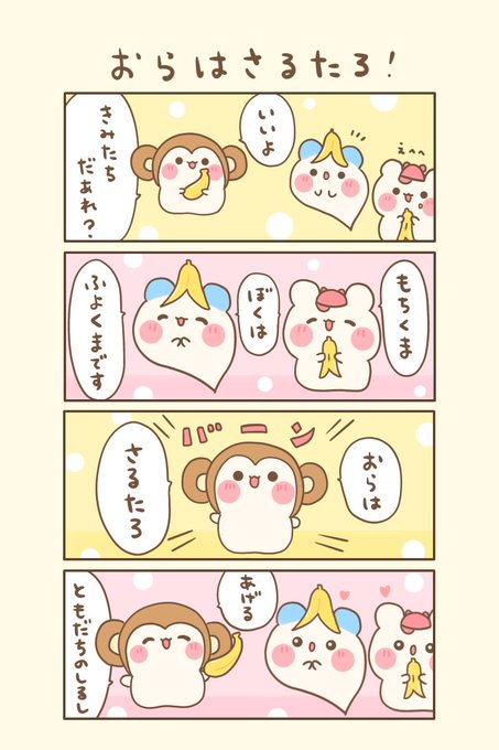 もちくまと7つの不思議な帽子🌈 🌟17の4『おらはさるたろ!』 おはよぉございます(●ˊ˘ˋ●)❤️ 今日もゆるるんよろしくま🐻❄️💖 #もちくまんが #漫画 #漫画が読めるハッシュタグ