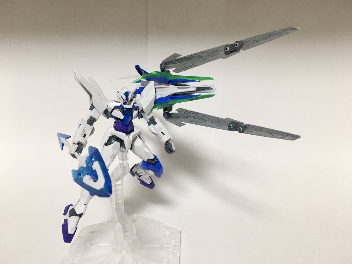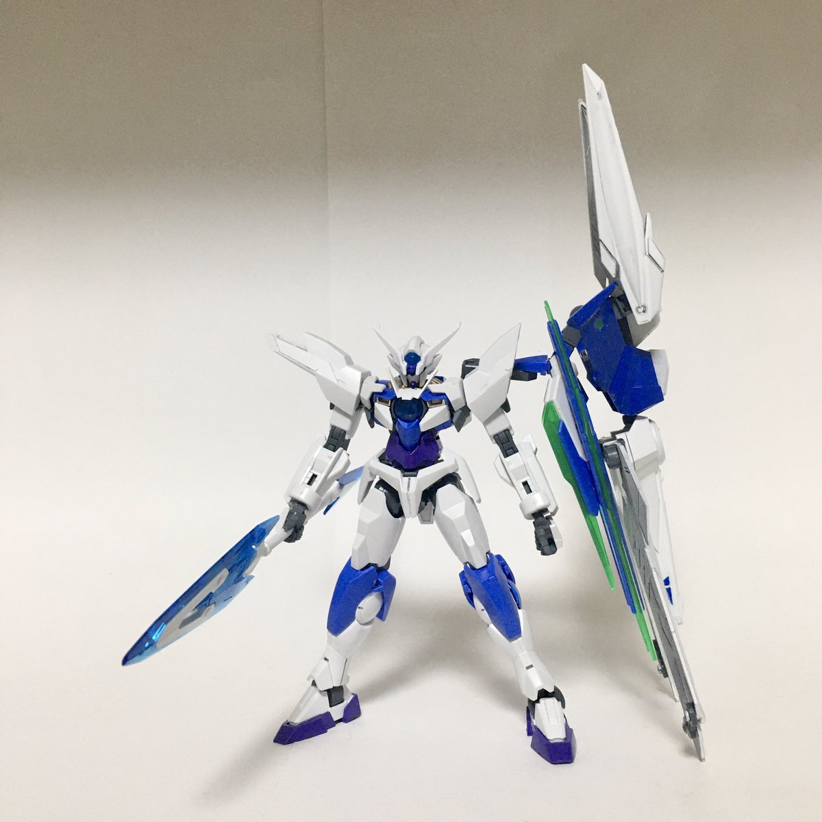 #ガンプラ #もちハスCBガンプラ展示会 作品名:無限の守護者「ダブルオークアンタ・アイギス」 解説:ELS(エルス)の地球飛来から数年後に開発された試作MS。背面の巨大兵装であるGNアイギスをシールド、スラスター、そして、ランチャーの3つの形態に変形させて戦う。