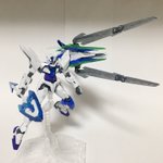#もちハスCBガンプラ展示会 「ダブルオーバニンタ GNHW/DV」 過去作の追加装備としてスナイパーライフル、脚部ブースター、大型クローキャノンとCBの各ガンダムの特徴を反映した装備を製作しました バニーモチーフという事もあり今回拘った所は腿の網目模様の塗装です! #ガンプラ