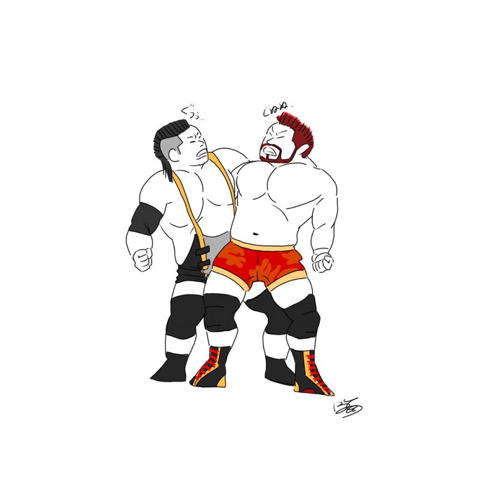 オレの方が…!!!!!! すごいんだ!!!!! #noah_ghc #noah_art #征矢学 #稲村愛輝 #似ているようで似ていない #身体の作りが全く違う #最高です #もっとやれ #イラスト #らくがき #Illustration #プロレス