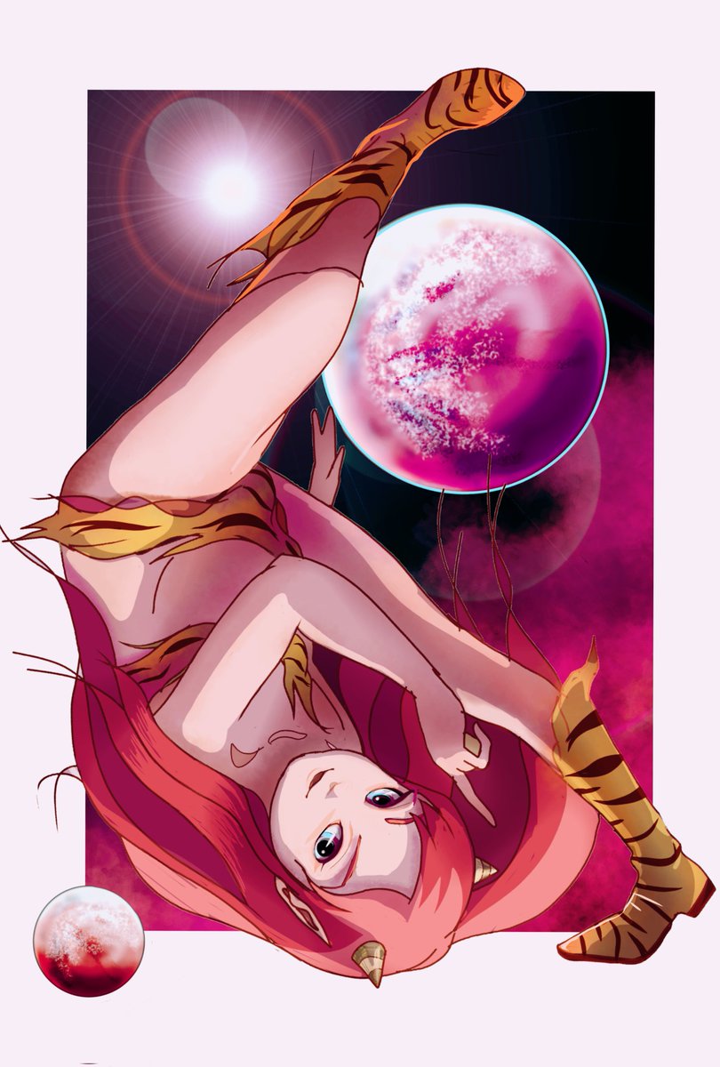 #みんなで楽しむTwitter展覧会 #冬の創作クラスタフォロー祭り #アトリエの系譜S #イラスト #artwork #Twitter交流会会場 #うる星やつら #ラムちゃん #もなカフェ 宇宙で側転するラムちゃんです(≧▽≦)/色合い好みの色で!