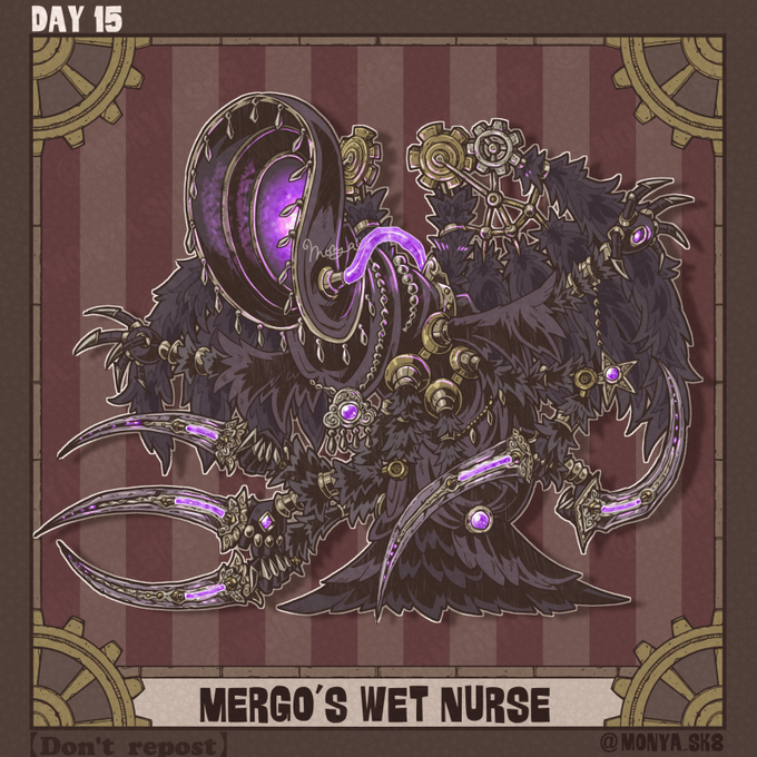 【 #bornetober2022 Day 15⚙️メルゴーの乳母】 意外と動き早いしよく可動する乳母。 #bloodborne × SteamPunk #もにゃ絵 #Soulstober