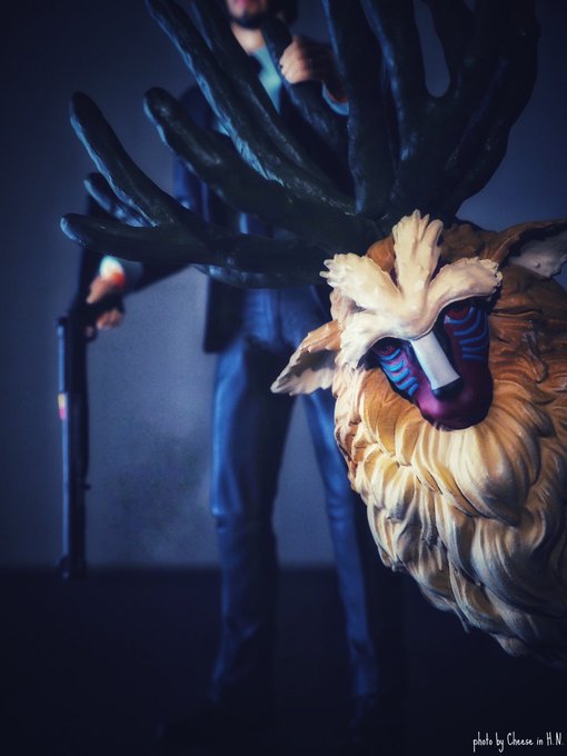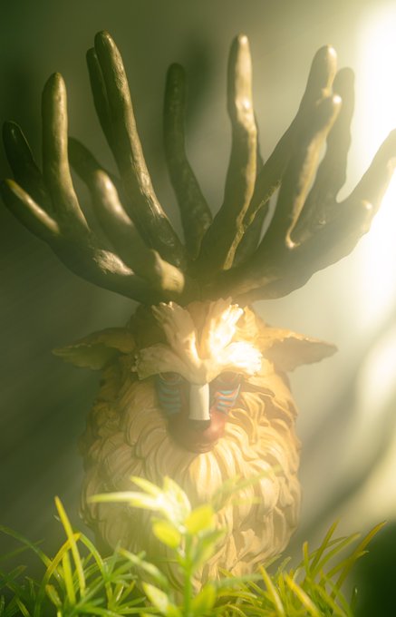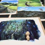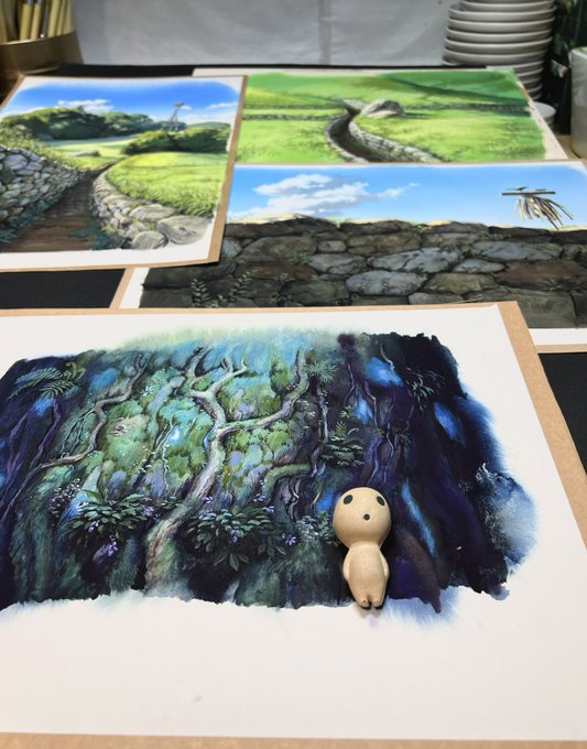 当時物のコダマ人形、久々に見たら経年感じるに色合いになっとる(・_・ ) 模写した背景画は20年以上経っても色味の変化起きてない。 ニッカー絵具さんのポスターカラーすごい✌︎ #もののけ姫25周年 #もののけ姫