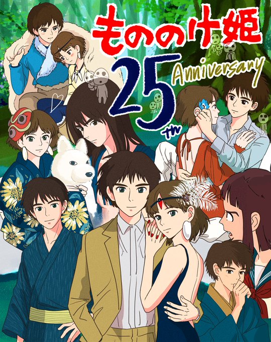 もののけ姫公開25周年🎉㊗️ おめでとうございます❣️✨✨ 記念イラストギリッギリ間に合った〜‼️😹 観る度に「自分も強く生きたくなる」 本当に素敵で大好きな作品です🙏☺️💐 #もののけ姫25周年 #ジブリファンアート