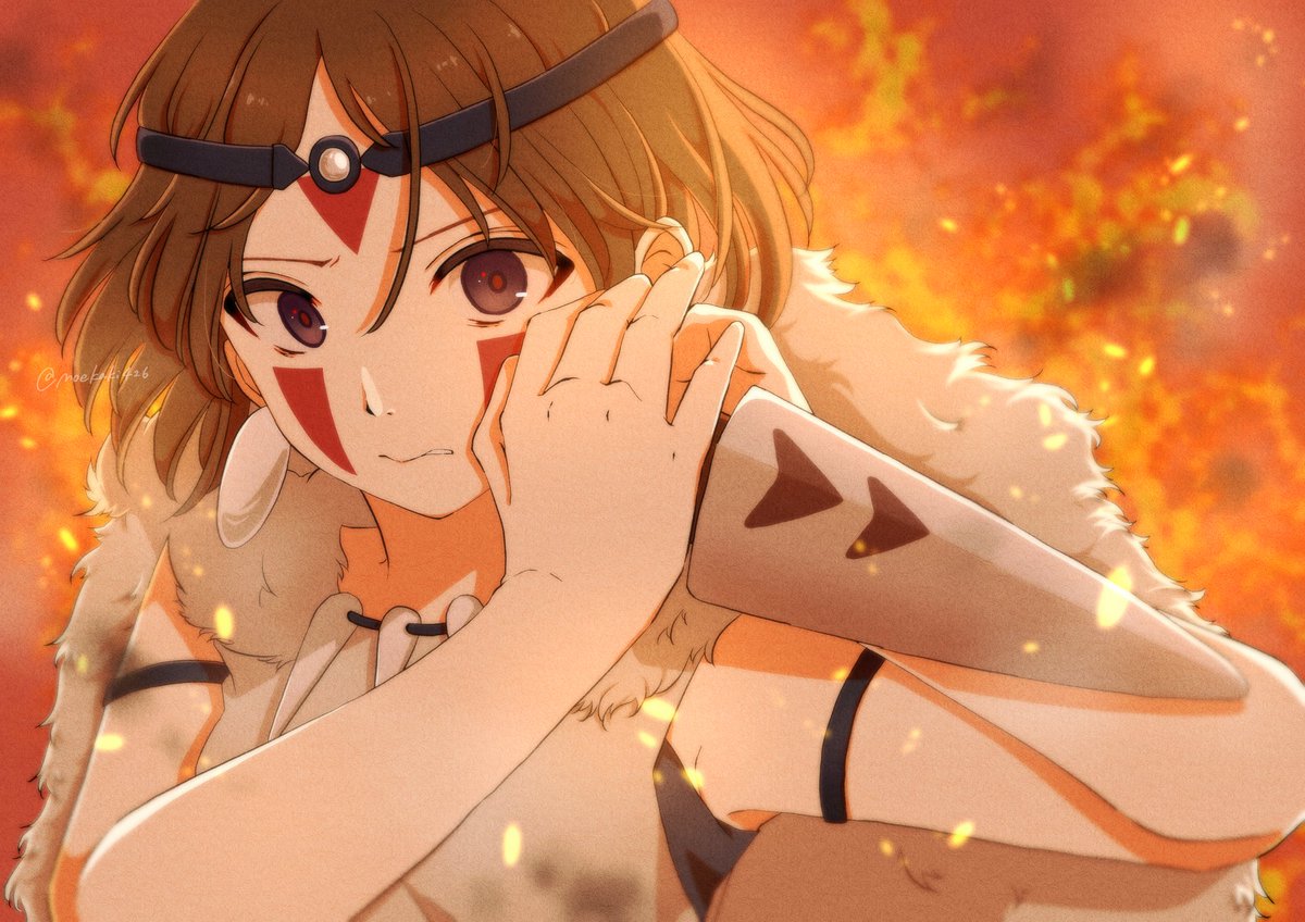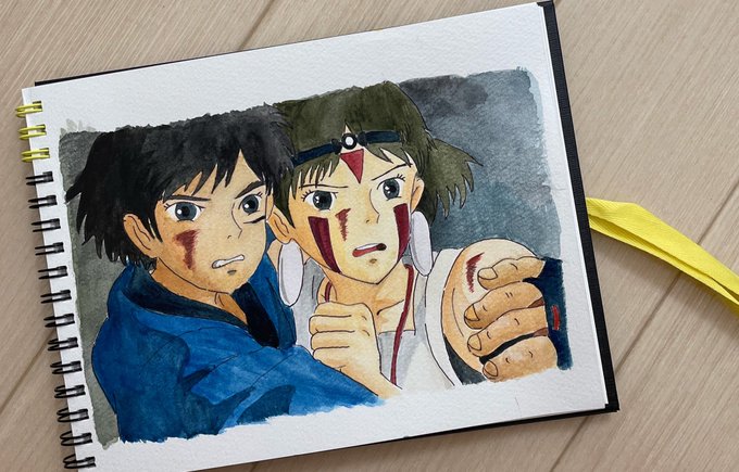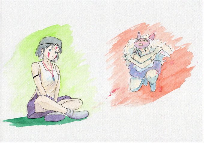 #もののけ姫25周年 もののけ姫25周年とのことで、過去絵ですがアップ。 サンと、私の推しキャラの業病の女性です。2020年のリバイバル上映で、劇場で観ることができたのは本当に嬉しい経験でした。大好きな作品の一つです。