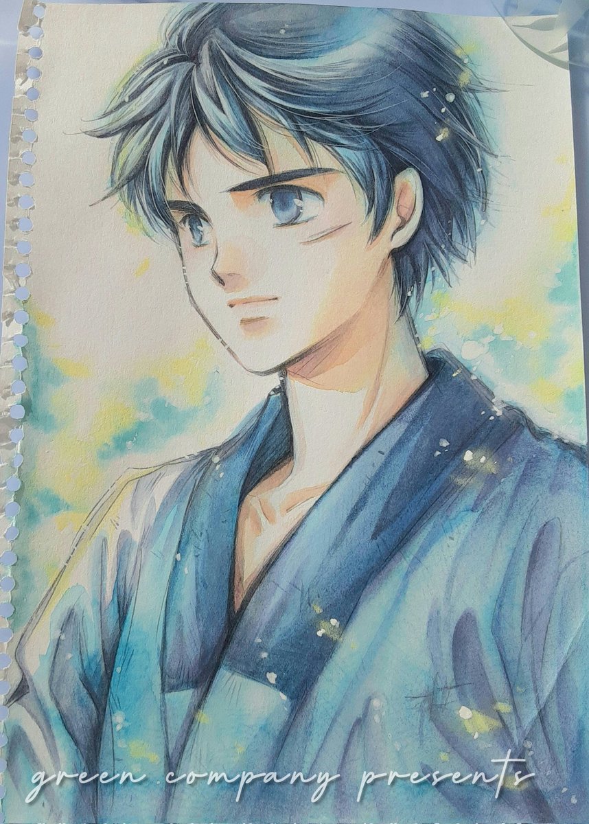 #もののけ姫25周年 #アシタカ #透明水彩 ちなみに2020年8月に水彩再開した1枚目 こちらのアシタカです~*押し入れにあった いつのか分からないスケッチブックを使い 何でこんなに染みるんだろう?とか😅