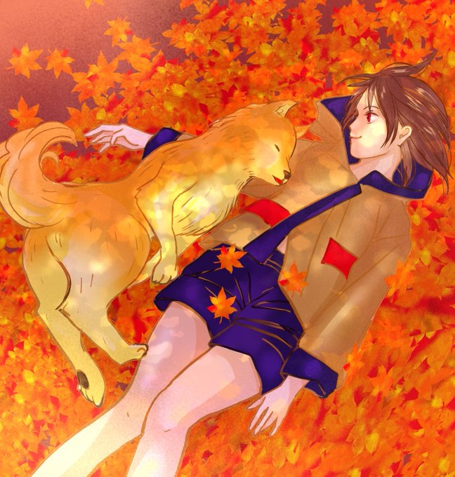 妄想わんこペス🐾となつみちゃん❤️#紅葉 のじゅうたんにねころぶ #もみじ #イラスト #デジタルイラスト #絵描きさんと繋がりたい #イラスト好きさんと繋がりたい #わんこ #犬 #オリジナルキャラクター #秋 #女の子