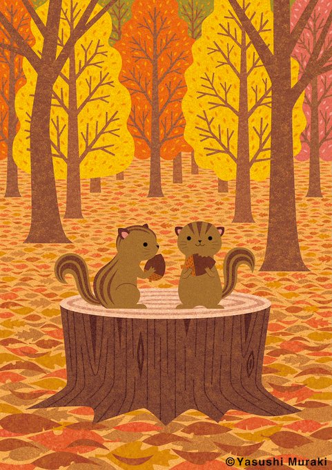 こんにちは!🌈👀 前歯うさぎさんです🐰🥕 【秋色が深まってきた!🍁 ~こりゃ自然の芸術品だね~】 #イラスト #前歯うさぎ #イラスト好きさんとつながりたい #絵描きさんと繋がりたい #絵柄が好みって人にフォローされたい #illustration #art #design #紅葉 #もみじ #葉っぱ #秋色 #芸術の秋