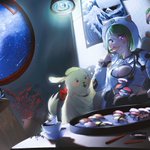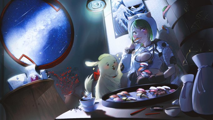 ひらがななちこさんをメインゲストに呼んで下さった方を描くタグ 【 #ひらがな幼稚園フ組担当なちこ先生 】 #9〖 雑談 〗BARしもこま復活!ひらがななちこさんとV活について語るよ~!🐡📷youtube.com/live/IpveTp588…… より #もむアート #フ組美術部