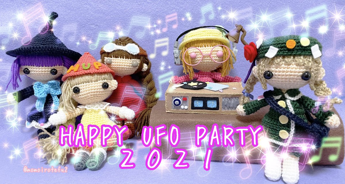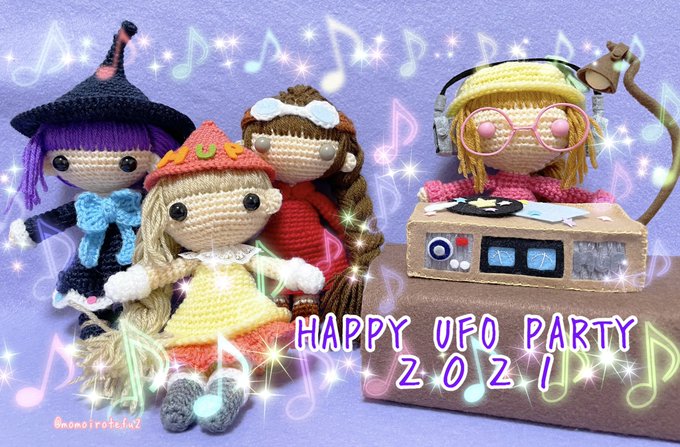 HAPPY UFO PARTY 2021 あと少しで始まりますね✨ 人も魔物もご一緒に 今宵の宴を楽しみましょ~((*´艸`)) 🎶 #hup2021illust #グルグルあみぐるみ #ももてふあみぐるみ