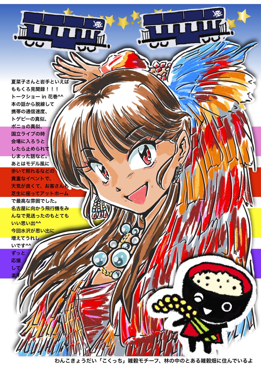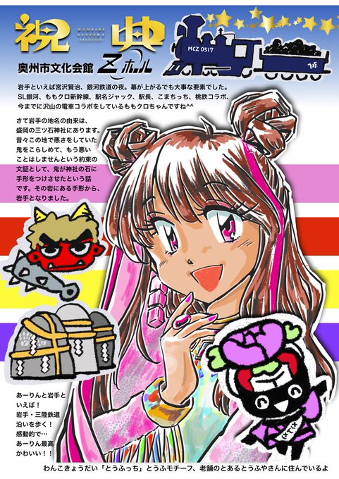 壁] ω`)ノ 祝典岩手、Zホール開催、おめでとう! いち県民として来県に御礼、招致活動してくれた方々に感謝を!! 祝辞は絵と、岩手にまつわる思い出を巻物に!!! ライブ楽しみです^^ 岩手に来てくれて、ももクロちゃんありがとう!!!! 今日は聖地巡り^^ #ももクロ祝典ツアー #momoclo_fanart