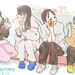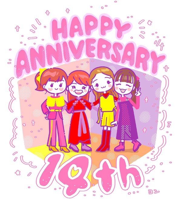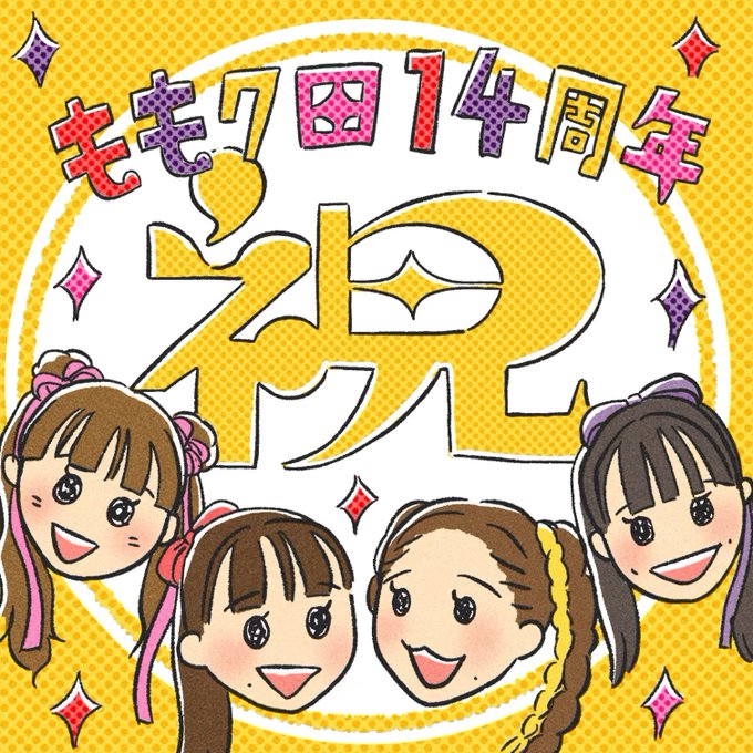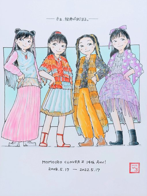 ももいろクローバーZの皆様、この度は結成14周年、アルバム祝典発売おめでとうございます㊗️ 努力しどんどん進化する姿と、いつまでも変わらない4人のわちゃわちゃに心奪われ続けています😍いつもありがとう🥰さぁ祝祭の始まりだ!!!!🥂 #ももクロ14周年の祝典 #ももクロ結成14周年 #momoclo_fanart