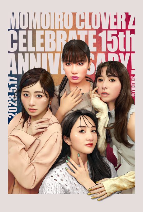 ももいろクローバーZ結成15周年おめでとうございます㊗️🎊 あっという間であり長い道のりでしたが、4人とスタッフの皆様の愛と情熱でここまで来れたのだと思います。20周年、いや50周年目指して爆進あるのみ!👍 #ももクロ15周年の祝典 #ももクロ結成15周年 #momoclo_fanart