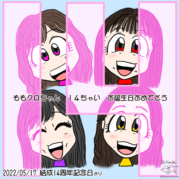 ギリギリ間に合った…! ももクロちゃん、14周年おめでとう!! 私の人生を紛れもなくキラキラにしてくれている女神たちのこの笑顔に感謝を込めて #ももクロ14周年の祝典 #ももクロ結成14周年 #momoclo_fanart