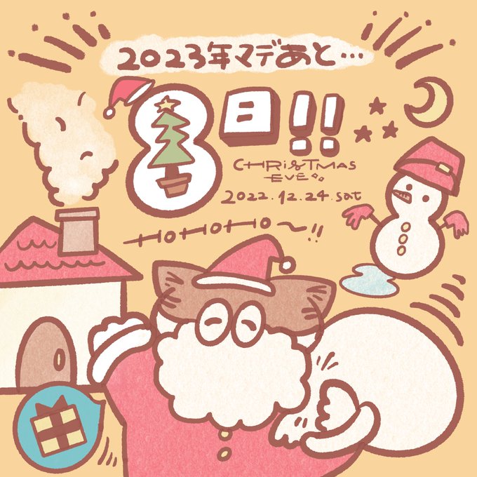 🐈<2023年まであと… 8日! 今日はクリスマスイブ!🎅🏻 今夜皆の所にサンタさん来るかな〜👀 もよはちゃおちゅーるをサンタさんに頼んだみたい💭 #クリスマスイブ #サンタクロース #クリスマスイラスト #あにまるいらすと #もよのイラスト #サンタイラスト #絵描きさんと繋がりたい #ciaoちゅーる