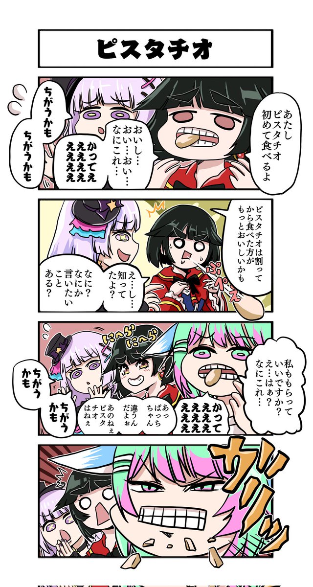 #もりのこれくしょん #あそびえ #ぱっちのアトリエ 朝刊の4コマ漫画描きました!ピスタチオ周りのもりんちゅさんの謎エピソードを漫画化しました。変なキャラ付けされてる遊さんがとてもかわいい。