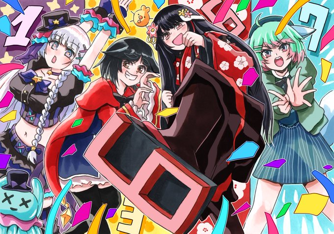 #もりのこれくしょん #コピック ごちゃっと楽しいイラスト描けました!歌配信総集編!!シュガーソングとビターステップのアニメのエンディングのやつみたいにしようと思ったけど、なんか増えに増えて予定とだいぶ違う感じになりました笑!(ぱっちさんのこと愛してるけど流石にごめんと思ったよ)