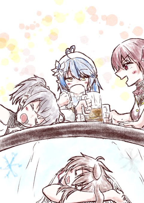 おはようごじゃいます 昨日のラミィちゃん #やかまし100万円飲み会 でみんなわちゃわちゃしてるのすごい楽しかった! てなわけで今日は久々に団長の新衣装リアタイで見て最近ハマってるCM風に描いたゾイ では今日も一日お仕事やんべ #ノエラート #今日のメモニン