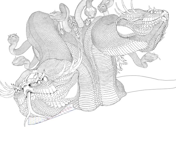 #やじるのえ #途中経過 #monsterdesign #creaturedesign 怖い顔系の龍。 人間、怪物、化け物問わず悪いことすると天から降りてきて「めっ!」てされる。 美しさと不気味さを両立出来たらいいな