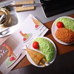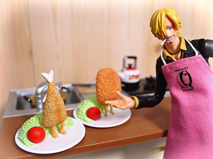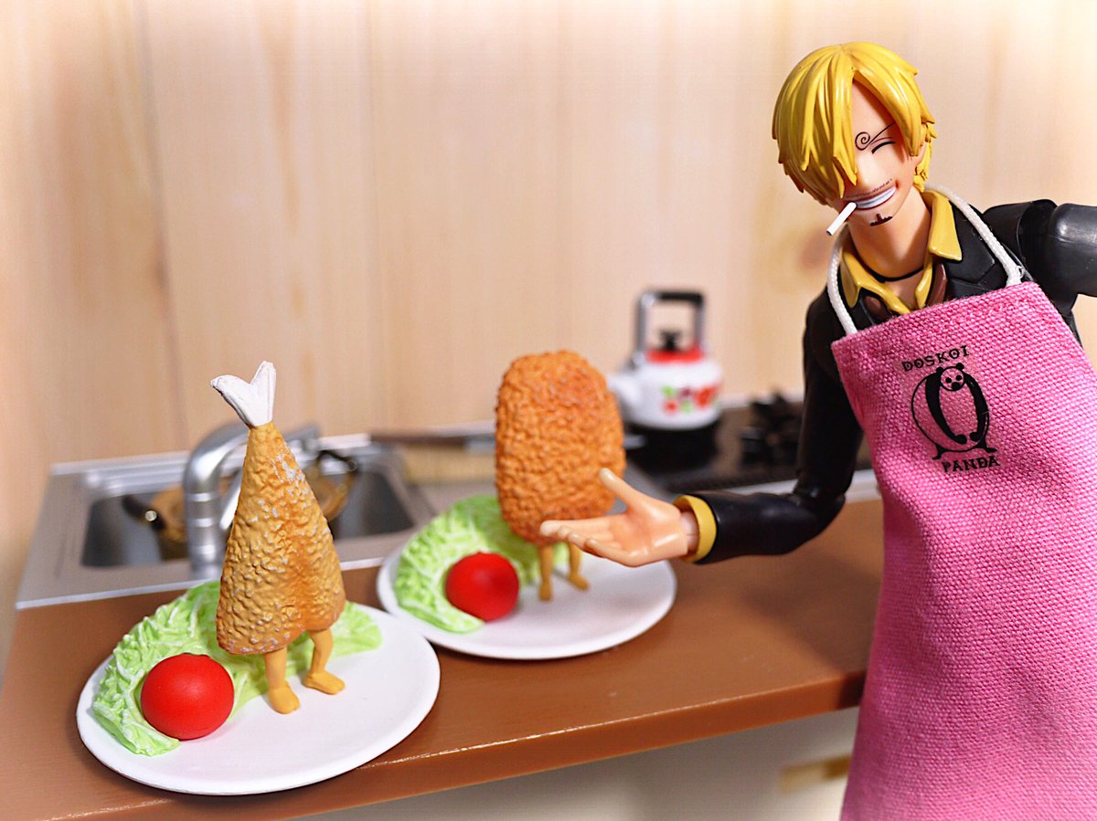 #夜のフィギュア撮影会 2/11 お題 『フリー』 ガチャの「 #やせいのエビフライたち 」をゲット!実はあまり興味なかったんだけど、フライが固定されてないからお皿+野菜だけで使えると知ったらもう手を出さずにいられなかったw いろいろのせられてこれは楽しい! #ガチャガチャ #カプセルトイ