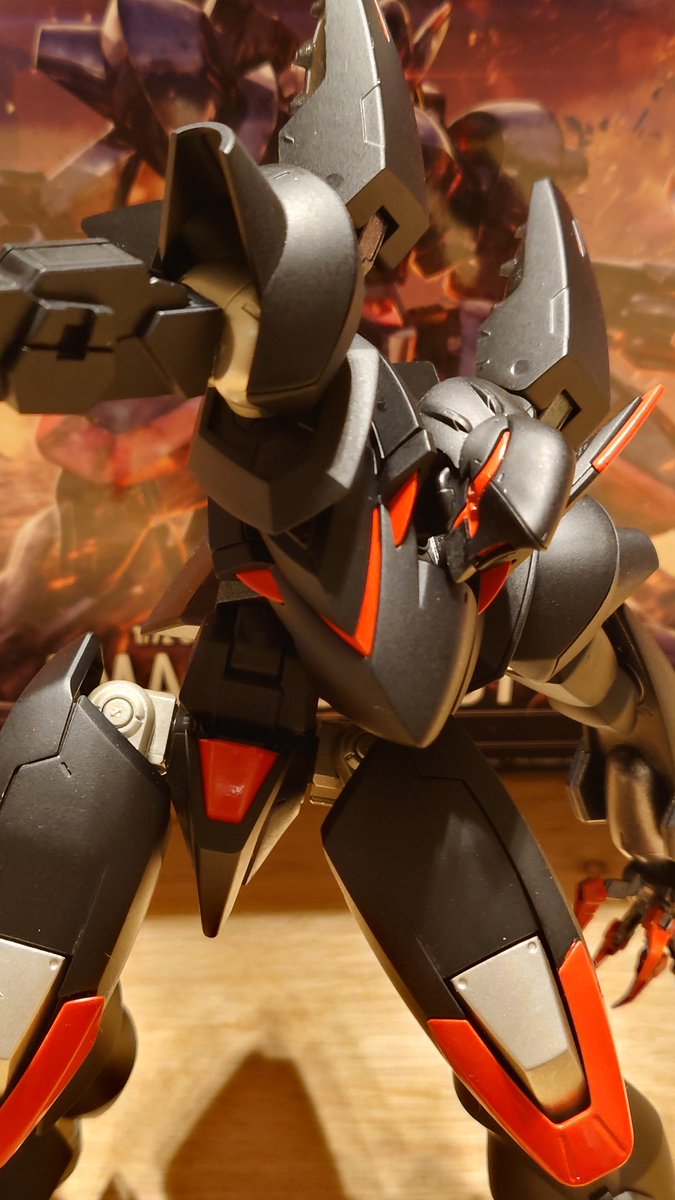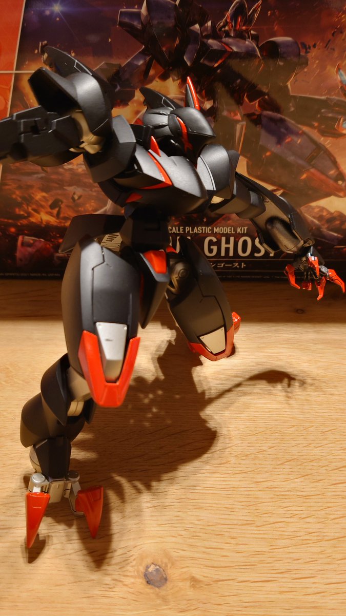 HGアメインゴースト爆誕♪ つや消しブラックに塗ってみました。チタンゴールドも好きなので脚に使用。赤はモデナレッドにクリアレッドで。ゴーストホント良いよね。 #ガンプラ #ガンプラの画像を貼るとRTされると聞いて #やっぱりザクが好き #境界戦機