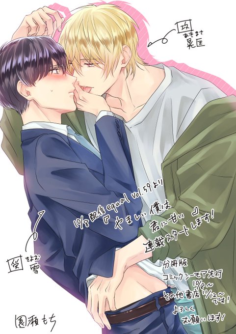 【お知らせ】 本日10/8配信のequal vol.59より『#やましい僕は君に甘い』の連載が始まります! 単話はコミックシーモア先行が同日、他書店は11/12〜の予定です。 訳ありヒモ男×社畜リーマンのお話です。 よろしくお願い致します!🙇♂️