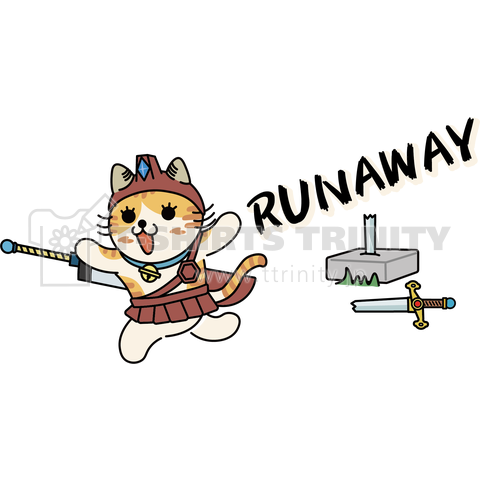 しげ屋です。今日は #やらかしシリーズやで 勇者もやらかした~ RUNAWAY勇者 ttrinity.jp/product/8358212 #Tシャツトリニティ #Tシャツ #ユーモア #イラスト #猫 #ネコ #cat #cats #猫好き #のんびり勇者 #勇者