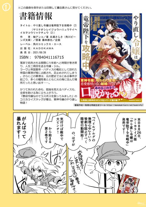 🌷コミックス発売🌷 本日8/26、コミカライズ版「#やり直し令嬢は竜帝陛下を攻略中」②巻発売です✨ お見かけの際は何卒よろしくお願いいたします🙇♀️ kadokawa.co.jp/product/322104…