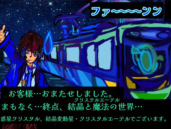 #ブルースターコネクト #ゆうさくの旅路2022 #鉄道開業150周年 #イラスト 2022/10/14・6時05分〜 🚃お客様…お待たせしました。 まもなく終点…… クリスタルエーテル…… (´・ω・`)💦 惑星クリスタル… 結晶変動星…クリスタルエーテル ……でございます。💦