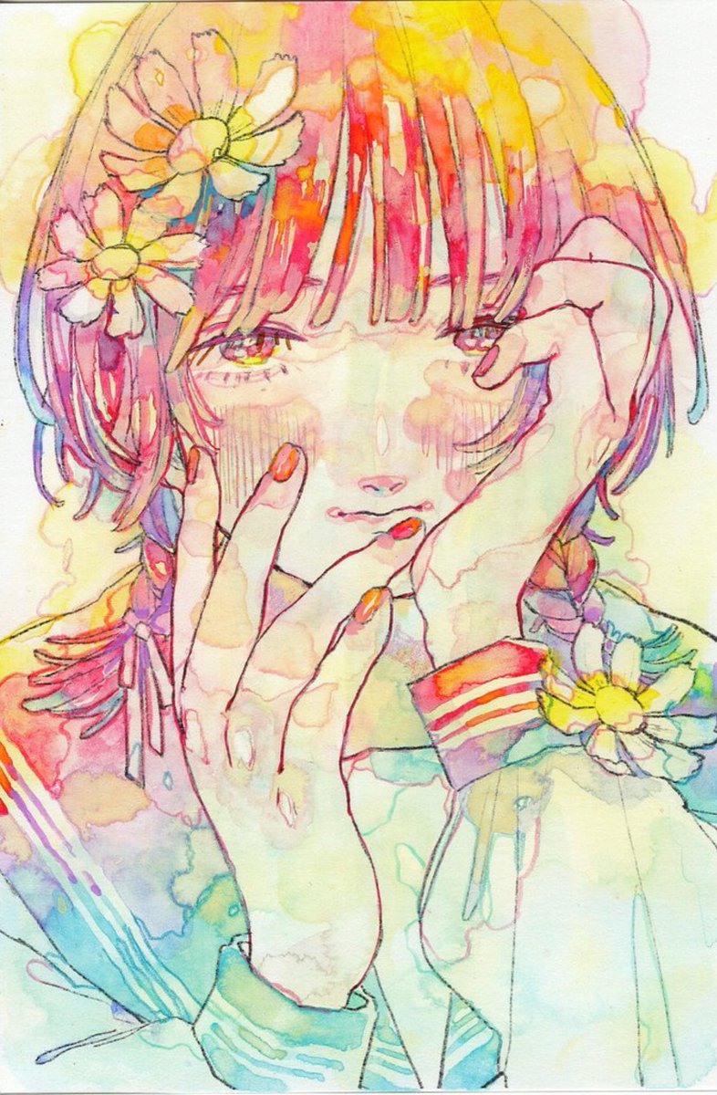 オカユウリさん(@blackistat2 ) 『恋心を色に溶かす』受講しました。 グラデーションや色合いから始まり新しい発見がたくさんあり楽しく受けることができました。 わかりやすい説明、アドバイスありがとうございました✨ #ゆうりとおえかき #yourschool #水彩画