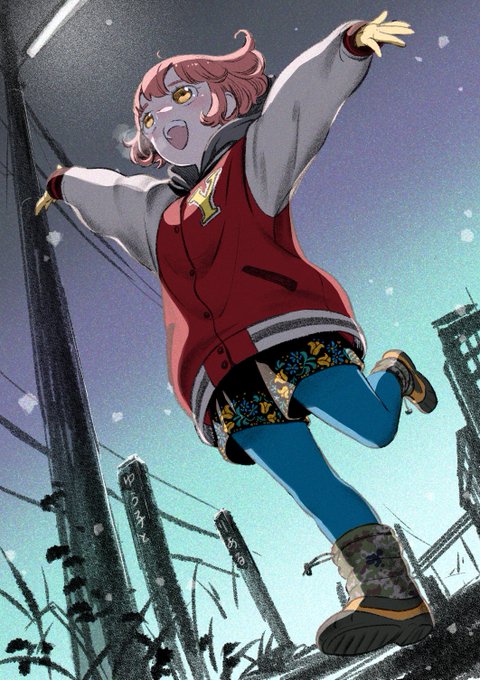らくがきゆう子 ホームセンターで見かけたブーツが描きたかったので(うろ覚え 漫画を読むと上の絵と同じ場所の同じ瞬間にいる意味が分かります。 pixiv.net/user/1470/seri… #ゆう子とりある