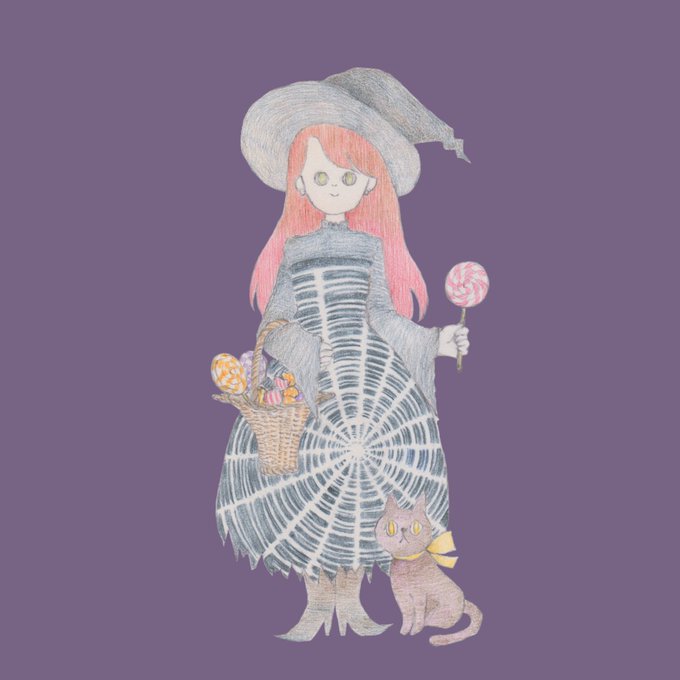 Trick or Treat🍭 #イラスト #絵 #色鉛筆 #illustration #art #ゆきんこ #ハロウィン #HALLOWEEN #trickortreat #お菓子 #キャンディー #魔女 #猫