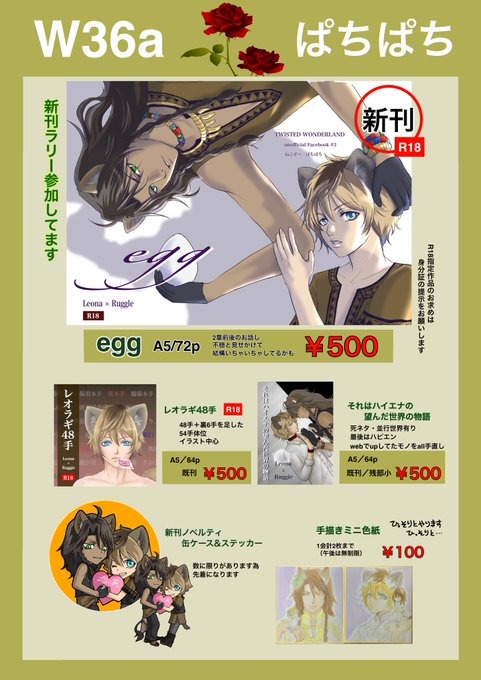 12/12レオーネに安らぎをDR2021 お品書きです 東8ホール W36a ぱちぱち #ゆくれら_くるれら 新刊ラリー参加してます どうぞ宜しくお願いします☺️ 新刊サンプル pixiv.net/artworks/94461… トリオキニ→ツリーにて