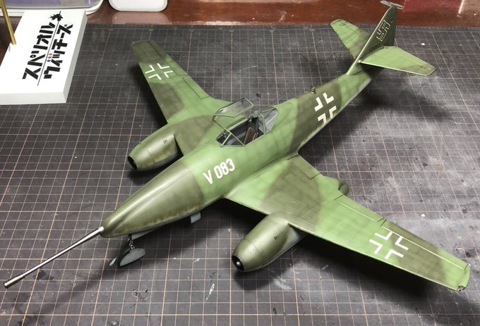 今年一つ目の作品が完成しました。レベル 1/32 Me262 A-1a/U4 機首は形状を修正。マズルブレーキは3DPで自作。初めて32の262作ったけど、思いのほか大きいのでビビる。 #ゆく年くる年262祭り #年越しモデリング
