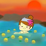 寒い日はあったかポカポカ温泉でゆったりと☺ ゆずもぷかぷか~ #絶景温泉 #冬至 #ゆず風呂 #illustration #イラスト #イラスト好きな人と繋がりたい #絵描きさんと繋がりたい #ゆるいイラスト