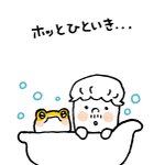 ゆっくりお風呂につかって疲れをとりましょう〜 #マシュマロおじさん #相棒チョコ #キャラクター #イラスト #かわいい絵本 #みんなで楽しむtwitter展覧会 #イラスト好きな人と繋がりたい #お疲れ様でした #ゆっくり休んでね #おやすみなさい
