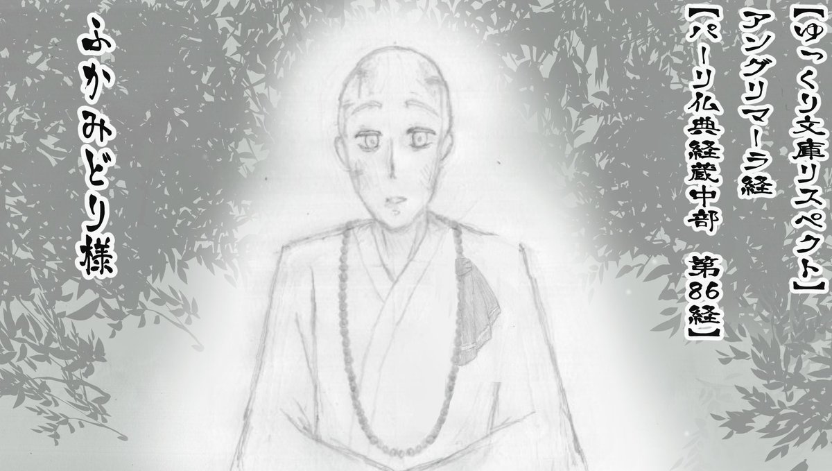 ふかみどり様の投稿動画、 【ゆっくり文庫リスペクト】アングリマーラ経【パーリ仏典経蔵中部 第86経】 のファンアートを描かせていただきました。 #ゆっくり文庫 #ゆっくり文庫リスペクト #ゆ文アート nico.ms/sm40621767?ref… #sm40621767