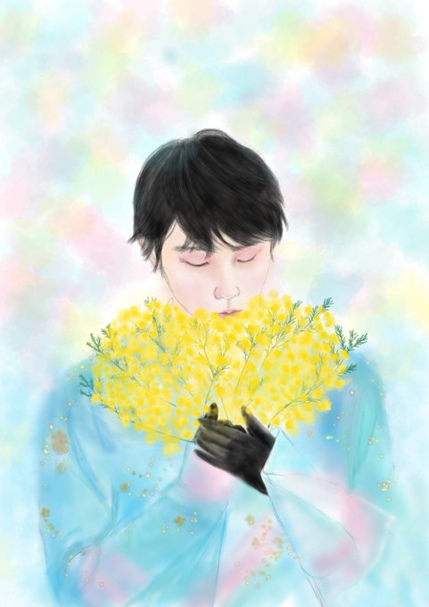 rabbit rabbit white rabbit 3月です 羽生結弦選手が ココロもカラダも右足も 優しくあたたかく癒やされて 笑顔で過ごせますように ゆづにふわもこ『ミモザ』の花束をどうしても贈りたくて、お絵描きしちゃいました🥺💛 ありがとう元気でいてね😢 #YuzuruHanyu𓃵 #GetWellSoonYuzu #ゆづお絵描き