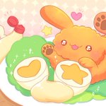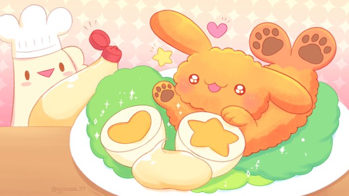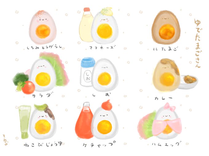 えびふらわんの大好物、ゆでたまごが! なんだかすてきなかたち!🍤♡☆ #ゆるいイラスト #イラスト #illustration #illustrations #ギョザー #えびふらわん #ゆでたまごの日