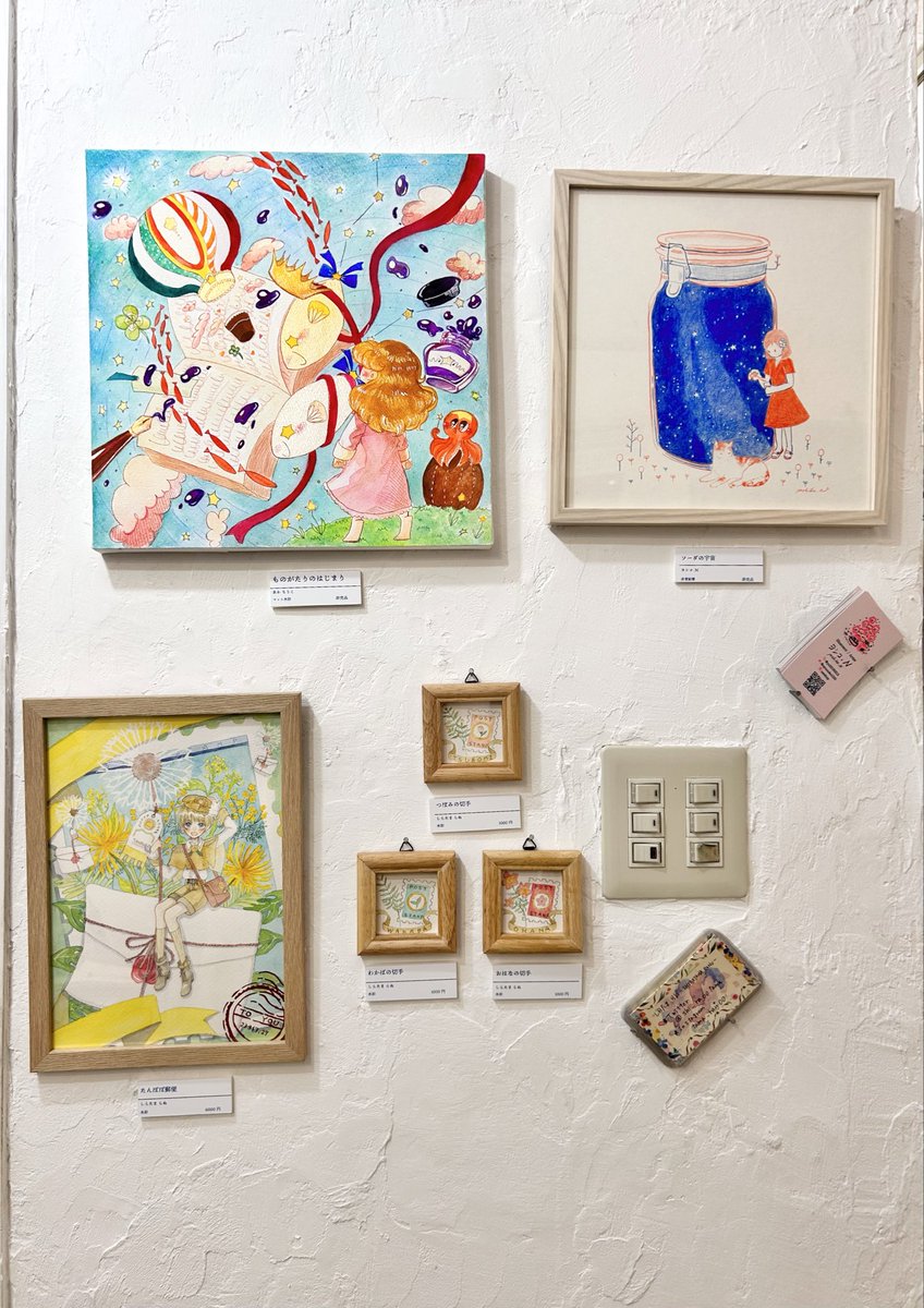 Creation Cafe IYN 『 #ゆめものがたり 』 展 6日目🌙会期も折り返し! 昨日もありがとうございました🙇♀️ 名刺は自由にお持ち帰りくださいね🥺 皆さんめっちゃ工夫されてたりと見てるだけで楽しいですよ☺️ 11時~18時まで! よろしくお願いします! #IYN #イラスト好きさんと繋がりたい