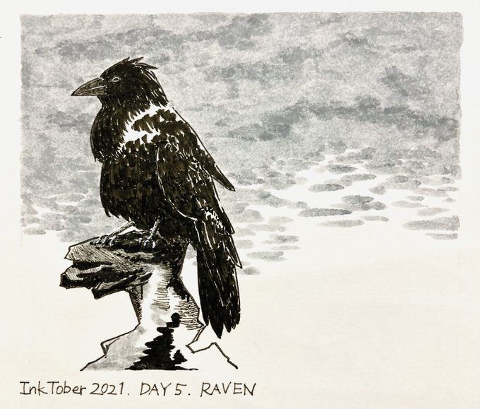 【#ゆめ画材インクトーバー2021 5日目】 ペン:ZIG イラストレーション ベーシックセット IKTB-21/5V 紙:ケント紙 お題はRAVEN(カラス)。筆ペンがかなり細ーく描けるので、お腹の毛、モフモフ、と念じていました。 いつか北海道にワタリガラスを見に行きたいです。 #inktober #inktober2021