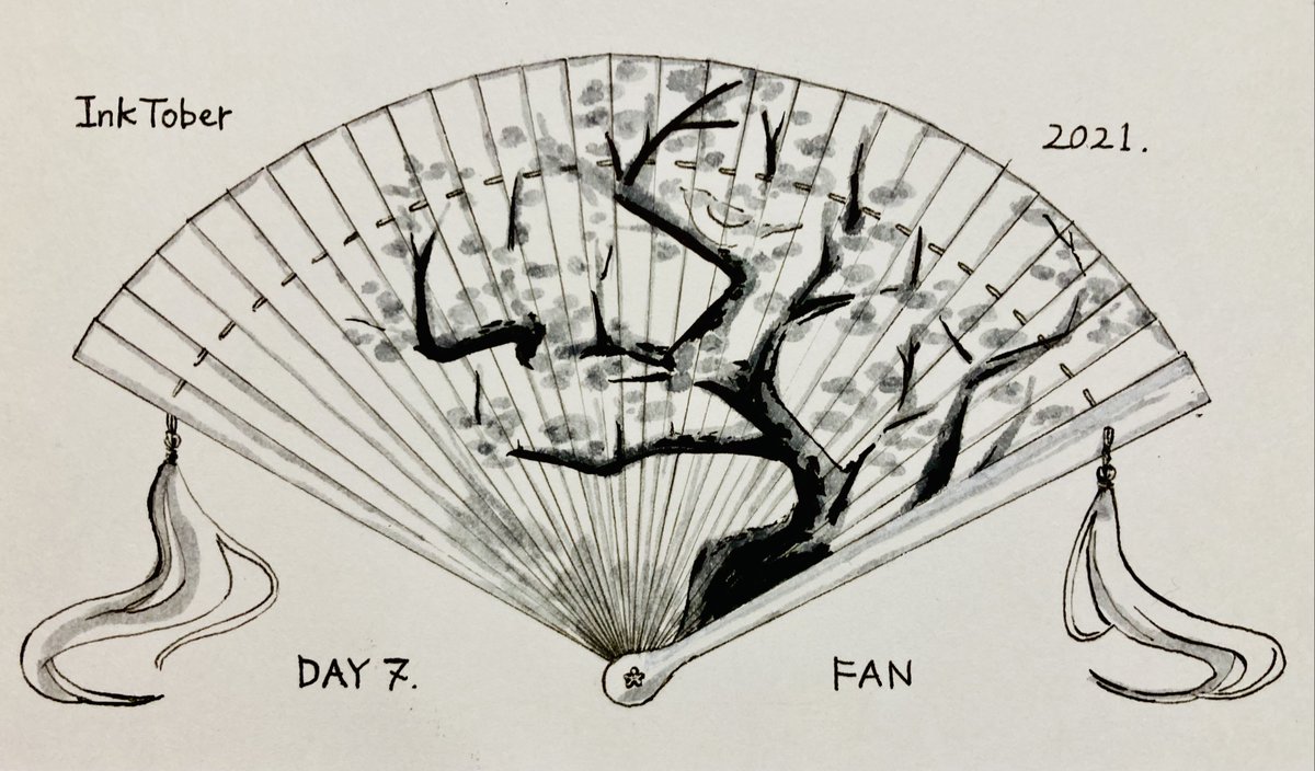 【#ゆめ画材インクトーバー2021 7日目】 ペン:ZIG イラストレーション ベーシックセット IKTB-21/5V 紙:ケント紙 お題はFAN(扇)。檜扇です。 セットに入っているMANGAKA01(ミリペン)が大活躍でした。かっちりした形・真っ直ぐな線が引きたい時にほんとに使いやすいです #inktober #inktober2021