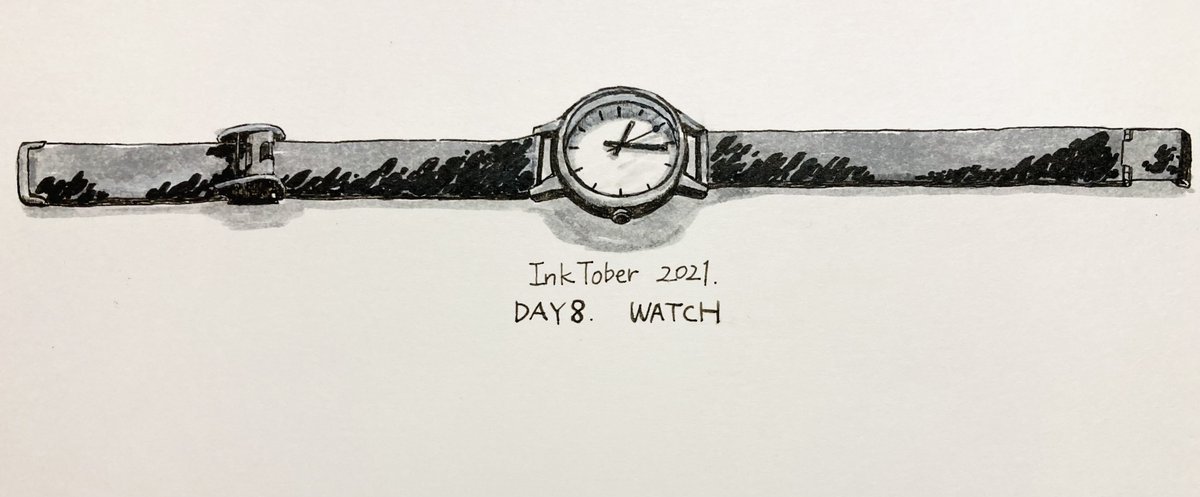 【#ゆめ画材インクトーバー2021 8日目】 ペン:ZIG イラストレーション ベーシックセット IKTB-21/5V 紙:ケント紙 お題はWATCH(腕時計)。白状すると段々なに描いてるか分からなくなってきていじり回してどうしようもなくなりました。グレーに頼りすぎるのもダメ…。 #inktober #inktober2021