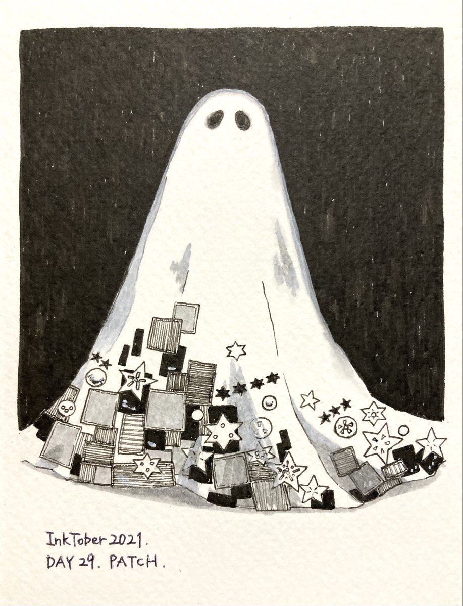 【#ゆめ画材インクトーバー2021 29日目】 ペン:ZIG イラストレーション ベーシックセット IKTB-21/5V 紙:水彩紙(モデラトーン) お題はPATCH(つぎはぎ)。ミリペン、長いストロークは紙との相性で掠れますが、気持ちゆっくり引くとストレスなく乗ってくれます #inktober #inktober2021