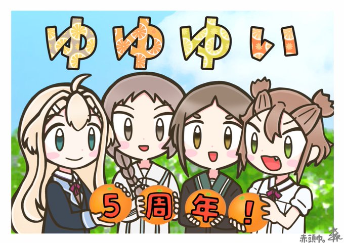 ゆゆゆい5周年おめでとうございます~!!!愛媛県出身の4人が好きなので描きました🍊 あんタマすずめはいいぞ! P.S.ゆゆゆい5周年記念生放送で飾られてて嬉しかったです🥰 #ゆゆゆい5周年お祝いイラスト #ゆゆゆい5周年 #ゆゆゆい