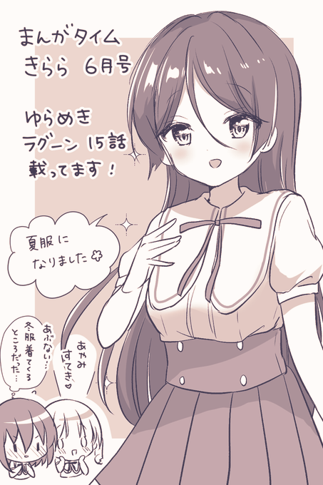 【連載】ゆらめきラグーン14話 まんがタイムきらら5月号で連載中です✨ 単行本作業で最近イラストが少なめですが、またちょこちょこ描いていきます(∗ ˊᵕˋ ∗) それと初の単行本が6月発売予定です🌸 #まんがタイムきらら #ゆらめきラグーン