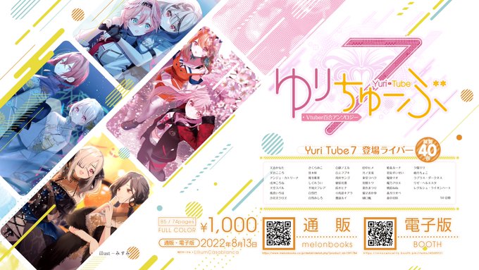 8月13日C100初日、西み19bにて『ゆりちゅーぶ7』を発行いたします! 参加者29名、登場Vtuber40名のてぇてぇ補給にぴったりな1冊に仕上がりました! B5サイズ/フルカラー74pにてお届けいたします✨ 通販:melonbooks.co.jp/detail/detail.… 電子版:innocencelily.booth.pm/items/4068931 #ゆりちゅーぶ #C100