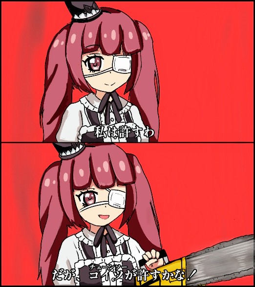 急に描きたくなった即撃ち2コマです😁 元ネタは銃ですが、ゆりねはチェーンソーのイメージがあったので変えました😊 #イラスト #イラスト好きな人とつながりたい #邪神ちゃんドロップキック #jcdk #ゆりね