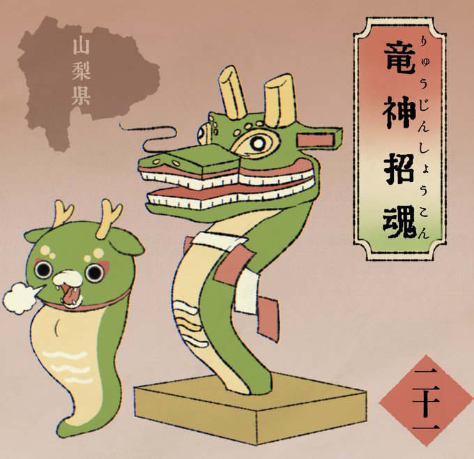 #ゆるかわ郷土玩具図鑑 18人目は山梨県出身の『竜神招魂』だニャ😸 彼は数少ない竜にちなんだ玩具なんだニャ! #イラスト #illustrationart #春の創作クラスターフォロー祭り #レトロ #絵描き #竜 #AgustD
