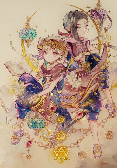 #ゆるっとアナログ企画 #ひと時の色彩_twstファンアート #twstファンアート 今回初参加です! 上記タグから素敵なアナログみれますよ🏷𓈒𓏸︎ テーマ【時間】 寝起きな双子を描いてみました。